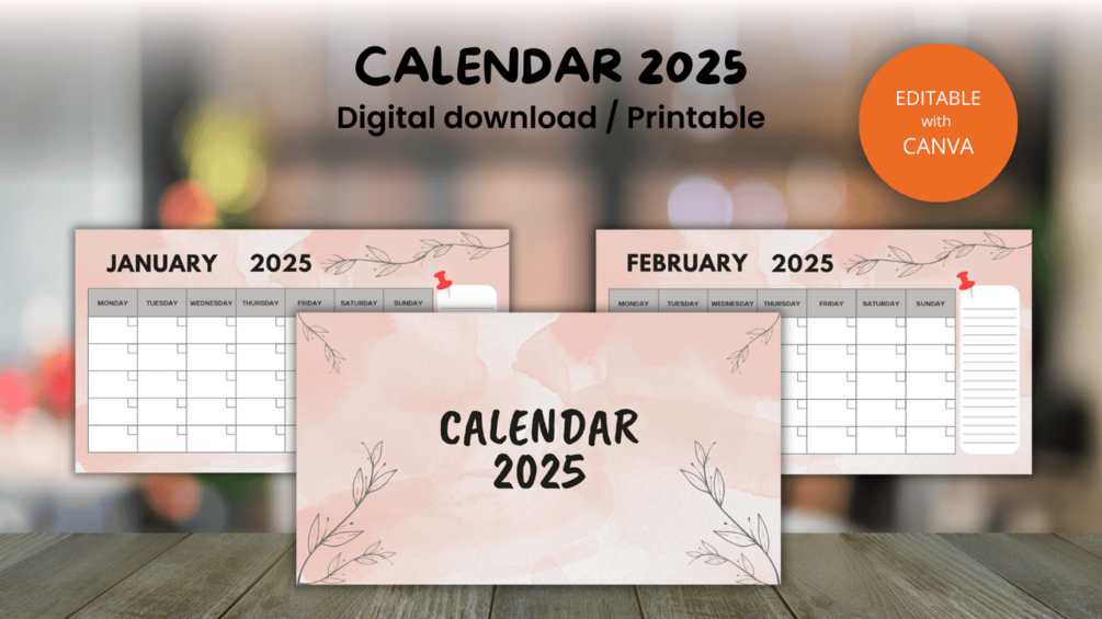 Calendar 2025. Canva template. Editable