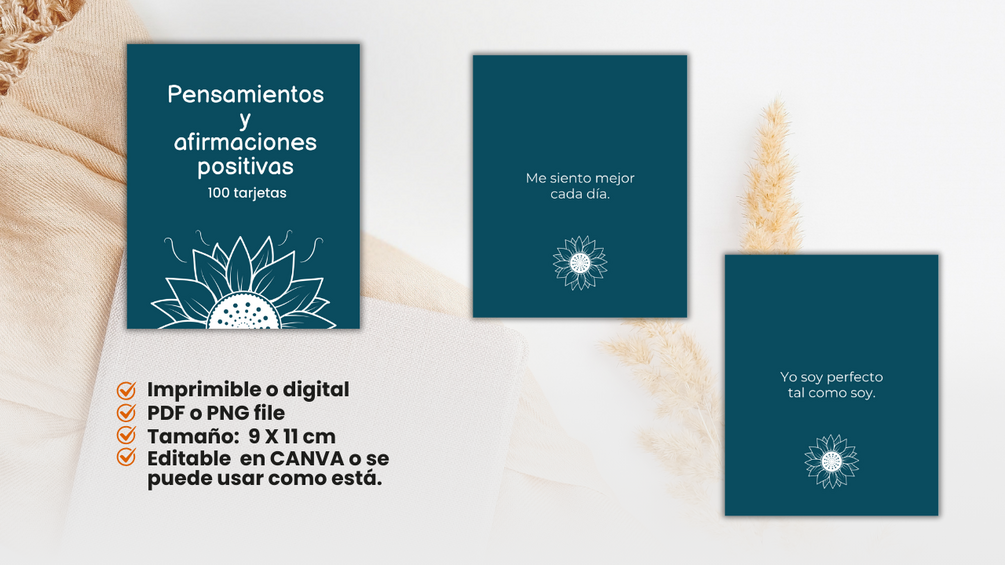 Pensamientos y afirmaciones positivas. Tarjetas. Imprimibles / Digitales /CANVA