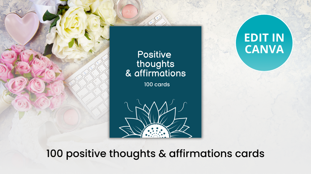 100 positive thoughts & affirmations cards. Canva template